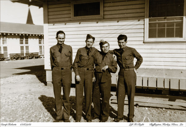Camp Roberts 1/18/1942, left to right: Buffington, Harley, Knox, Lee |
