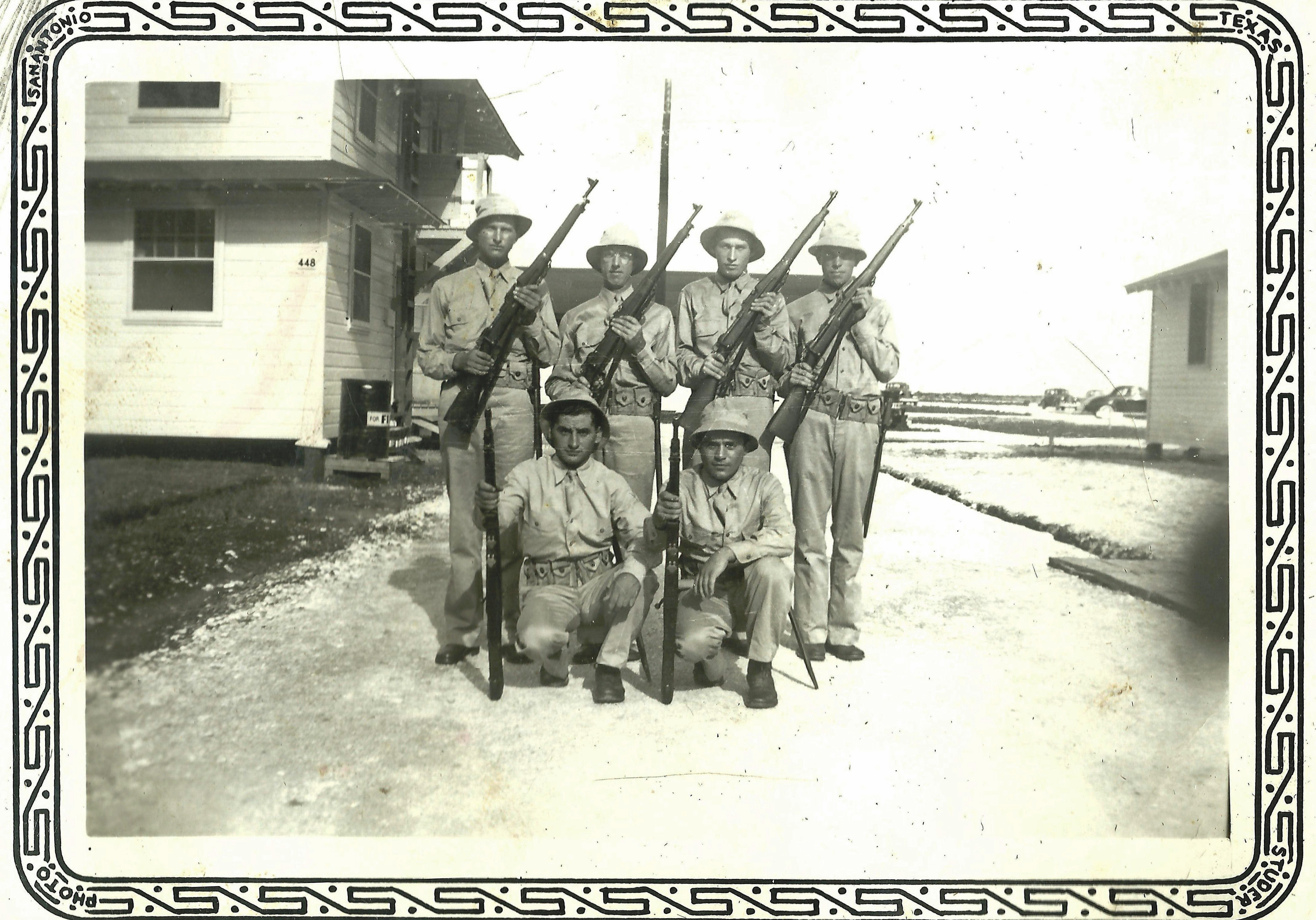 Camp Wolters, Texas - early 1944. Pvt Tawney is the tall soldier, back row, far left. Identity of other soldiers unknown.