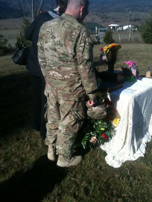 Soldier to soldier - Pfc. Bruce John Weick saying goodbye to his grandfather.