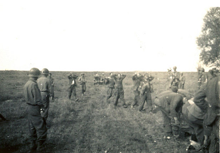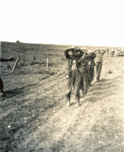 Photo's by 1st Lt. Keith L. Winger, probably taken with a Kodak Brownie camera. "Some of Hitler's Supermen" is written on the back of the picture of the surrendering German soldiers.