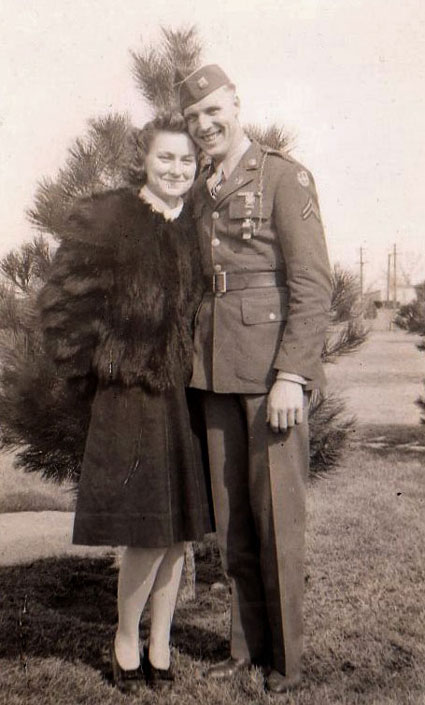 He married Viola Wikoff, 23 Feb. 1944 in Kansas. After his service they settled in Southern California, where he lived until his passing Aug. of 2001. Below is a letter that he sent home in May 1945.