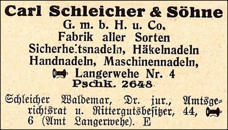 needle manufacturing company that later became known as Carl Schleicher & Söhne was originally founded