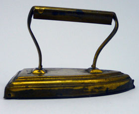 A flat iron, sometimes called a smoothing iron, consists of a flat, somewhat triangular shaped, cast iron body with a handle, to provide heat and