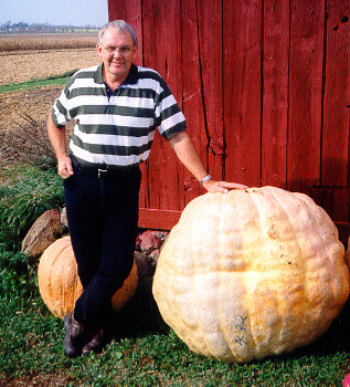 This summer at the Morewood farm, Ian, Bruce, Bobby and seven other friends and neighbours took part in a giant pumpkin growing contest. At the end of the seasons Ian's plant had produced the largest pumpkin which weighed 432 lbs. One of the other participants was so proud of the "thing" that he took it to a local fair where it received 2nd prize. On Saturday October 24th, Colleen and Bobby hosted a pumpkin party in the old red barn. The participants and their families arrived dressed in Halloween costumes. Ian's pumpkin was declared winner and he received a cash prize and an engraved trophy. Later in the evening while everyone enjoyed a potluck meal, Ian and Jill entertained the gathering with a game where blindfolded guests had to feel and guess what was in ten different mystery bowls, things like peeled grapes, wet gummy worms, prunes, relish, etc. That contest produced a lot of screams and laughs. Everyone had great fun and all agreed to continue the pumpkin contest next year. Ian wouldn't tell what his secret fertilizer was that he used on the giant "thing" but there was a rumor he was seen feeding it a mixture of MIRACLE GROW and VIAGRA.